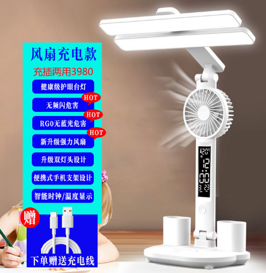 Double Head Eye Care Desk Lamp Rechargeable Student Dormitory Study Special Bedroom Bedside Work Lamp Super Bright Long Battery Life