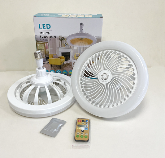 Socket Fan Light with Remote Control, 3 Colors 3000K-6500K Dimmable LED Bulb Ceiling Fan Screw for Bedroom, Kitchen, Storage Room, Closet, Small Wireless Ceiling Fans with Lights - White